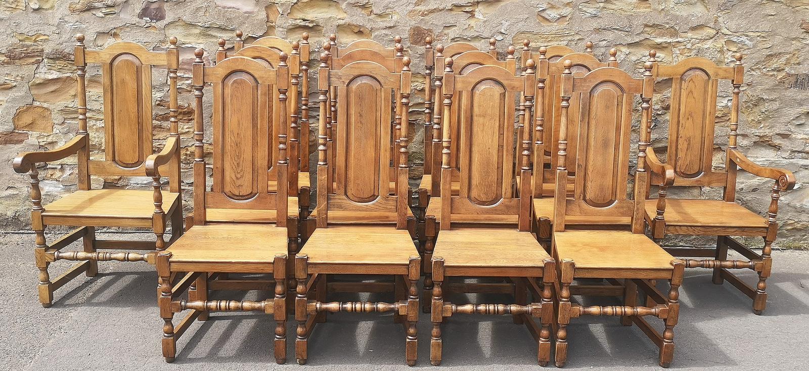 Set of Fourteen High Back Oak Dining Chairs (12 + 2 ) (1 of 14)