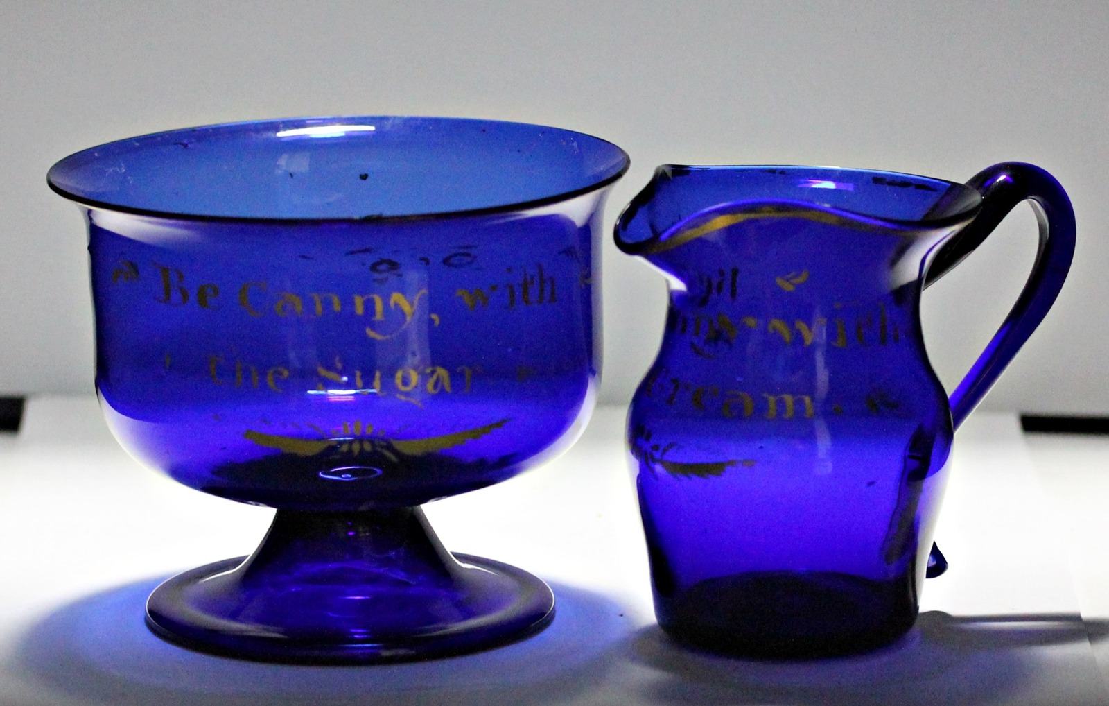 Set of Georgian, Hand-Blown, Gilded, Bristol Blue Glass Cream Jug & Sugar Bowl