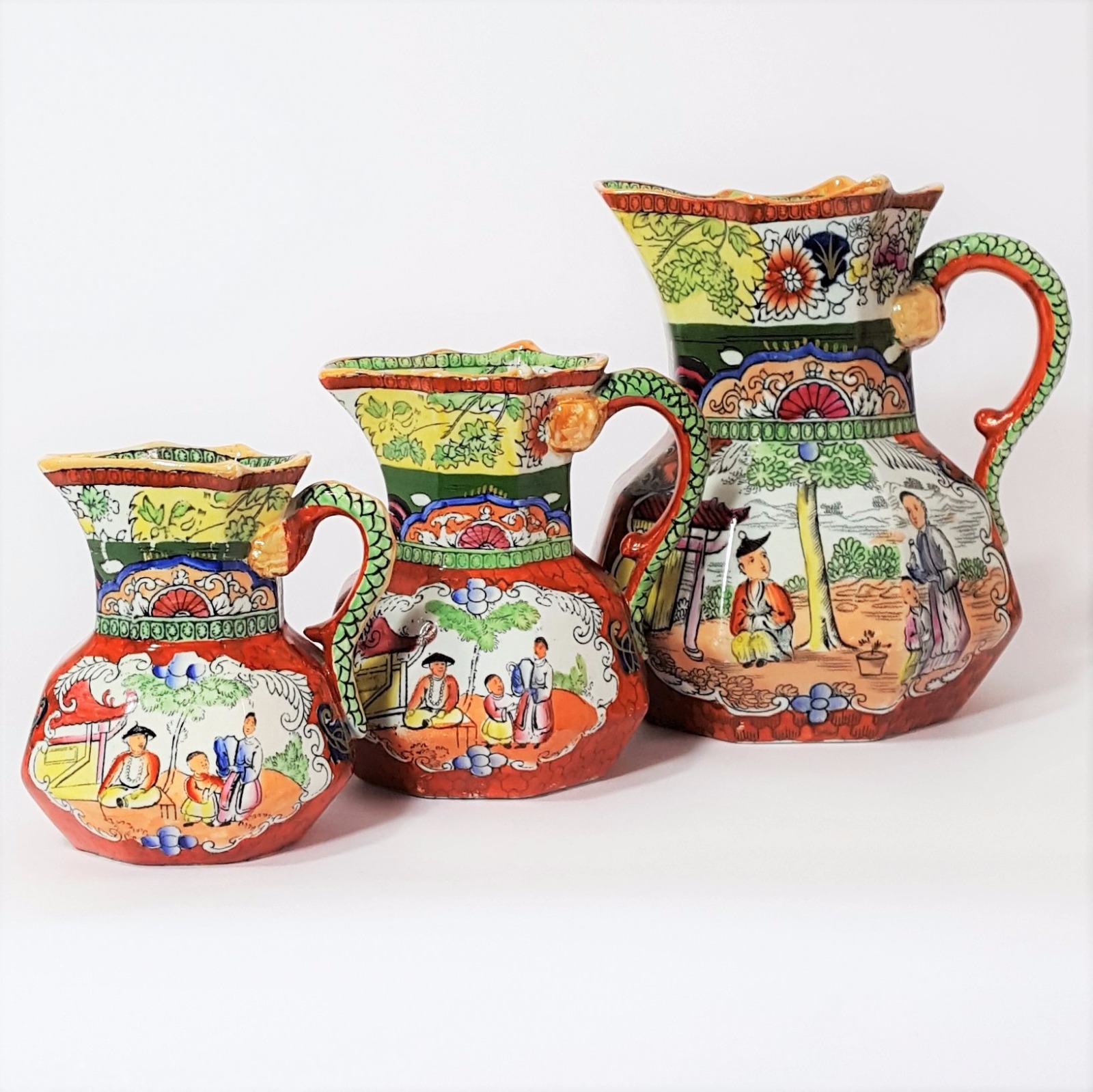 Set of Masons Ironstone Chinoiserie Hydra Jugs C.1840