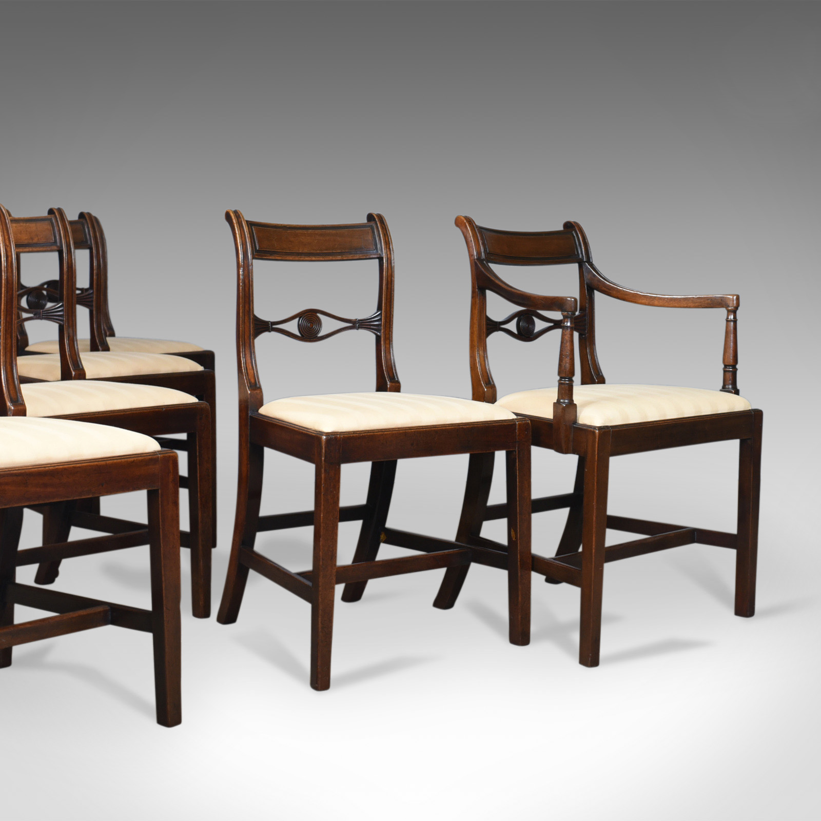 Set of Six, Antique, Dining Chairs, 5+1 English, Regency, Mahogany c.1820