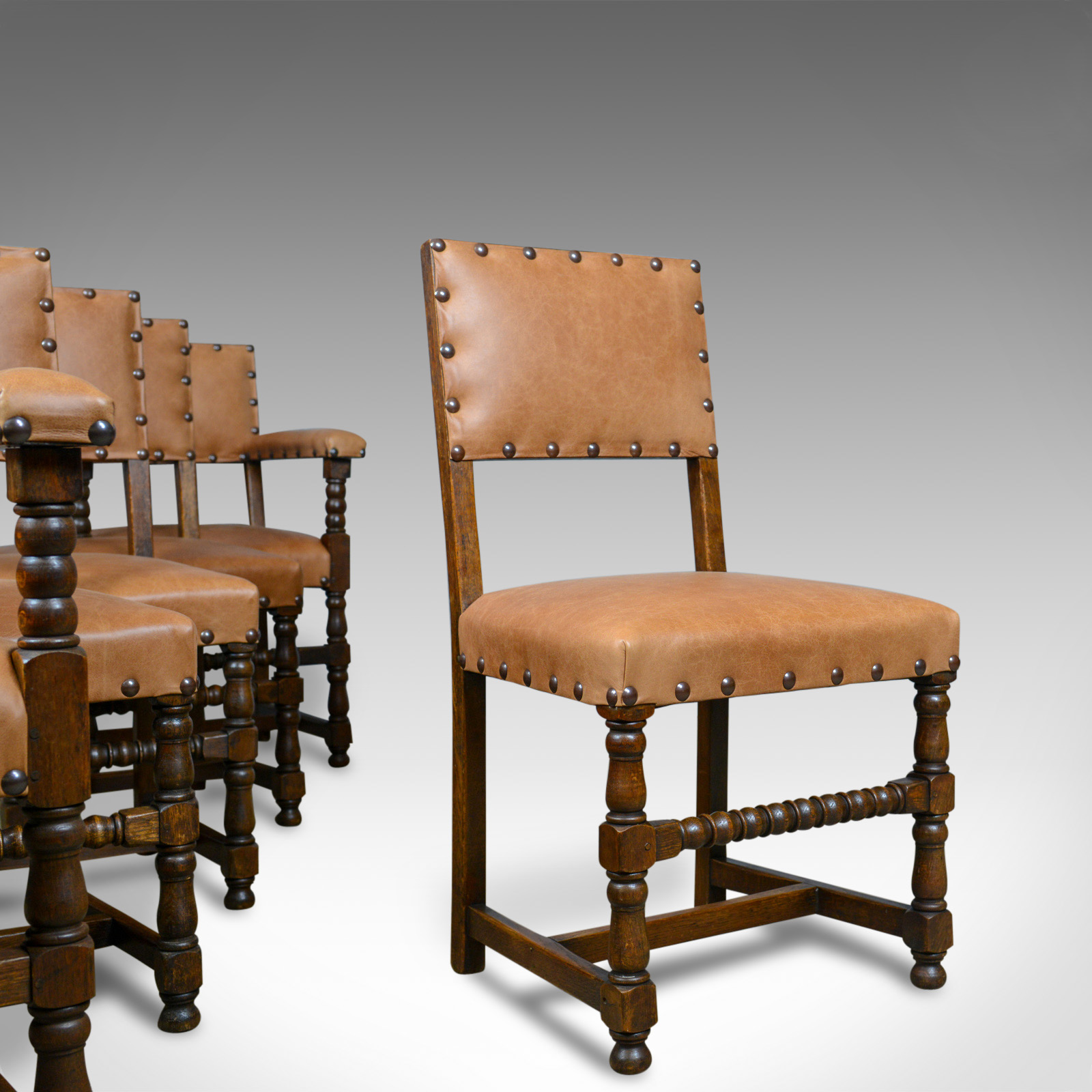 Set of Six Antique Dining Chairs, Edwardian, 17th Century Revival, Oak c.1910