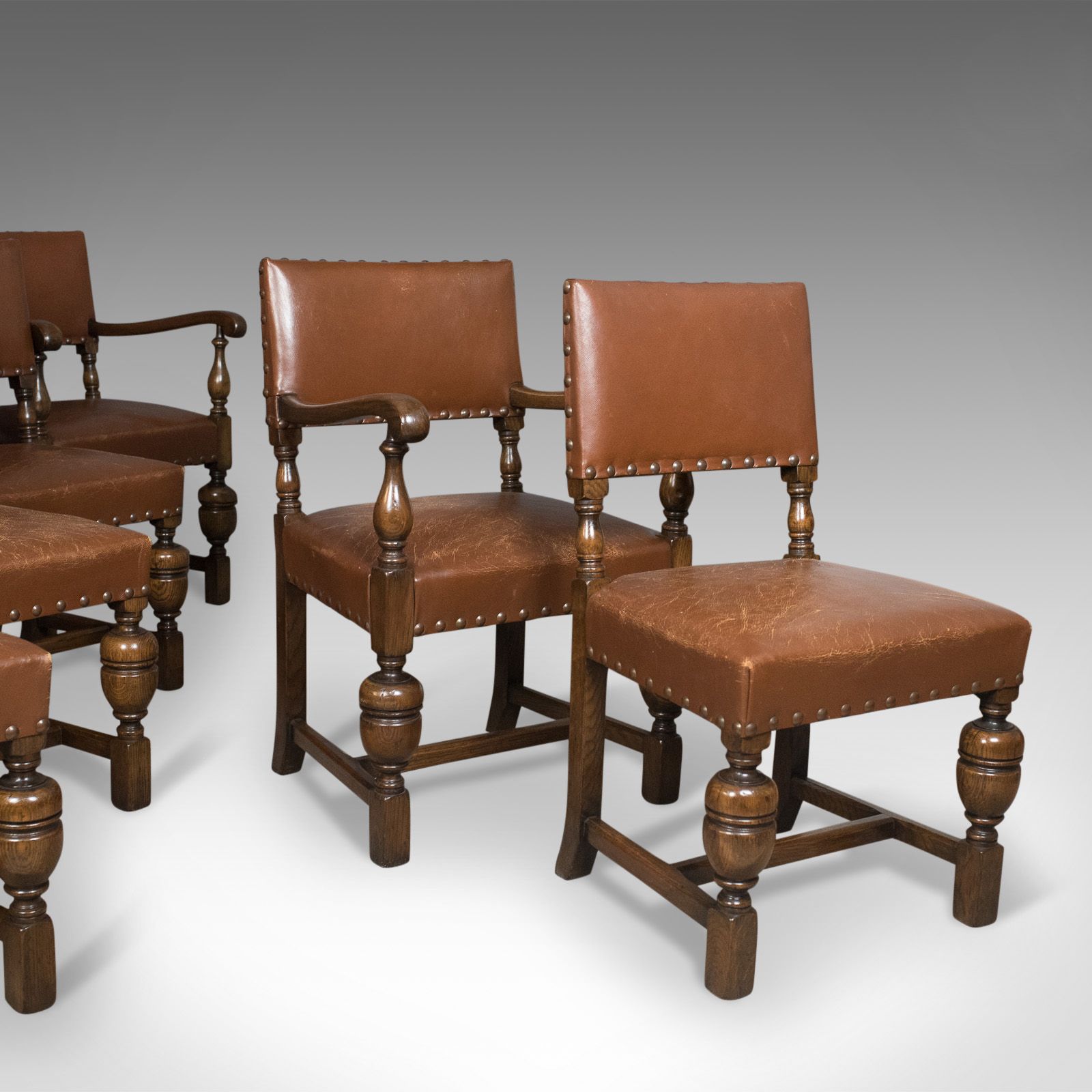 Set of Six Antique Dining Chairs, English, Edwardian Cromwellian Revival, Oak