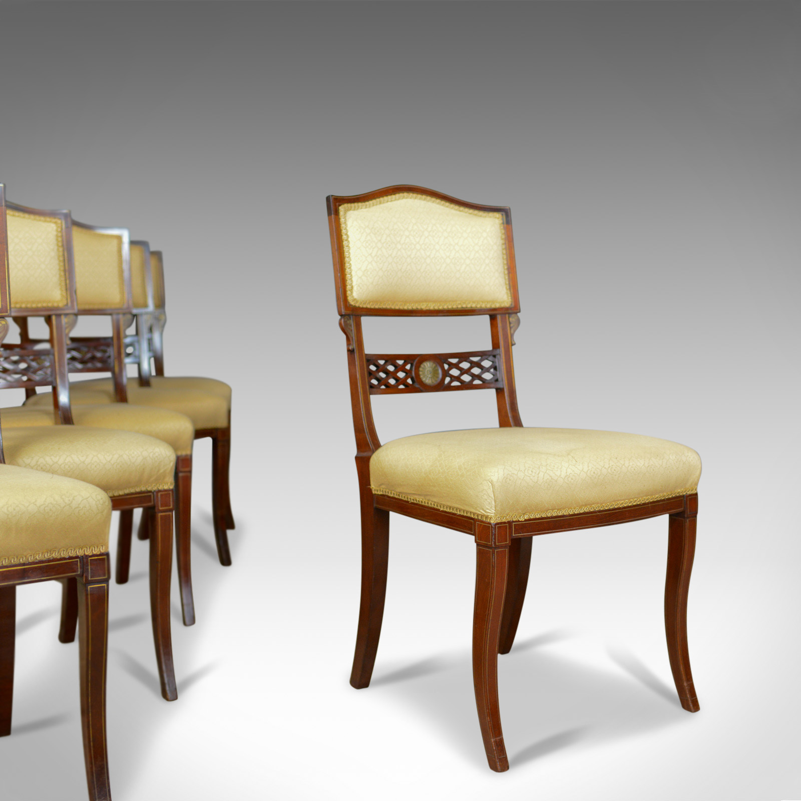 Set of Six, Antique, Dining Chairs, English, Regency, Mahogany c.1820