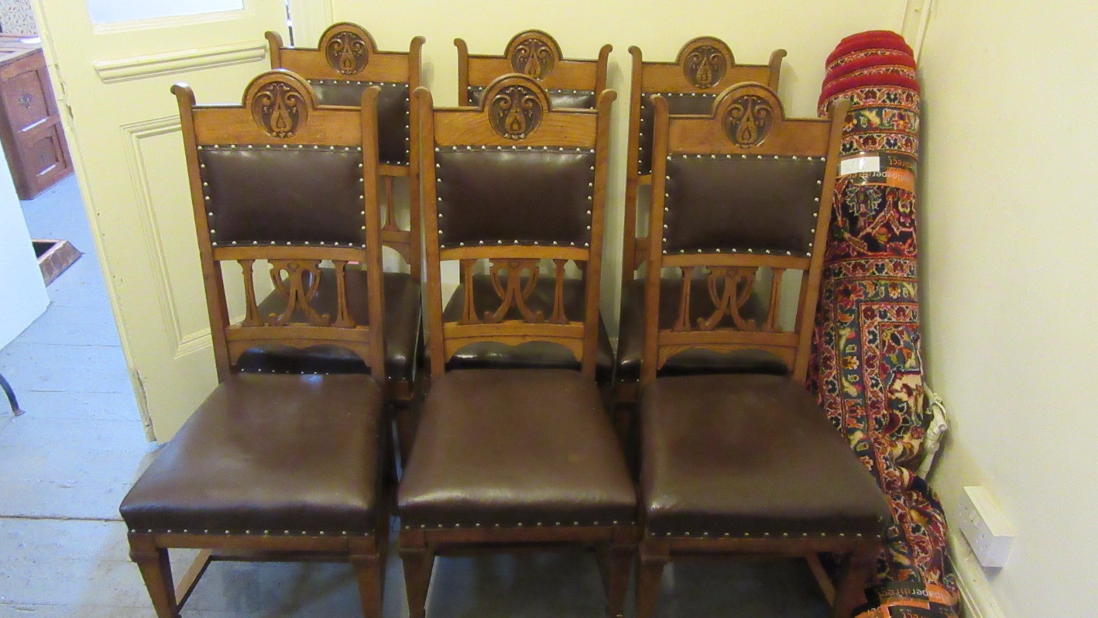 Set of Six Antique Oak Arts & Crafts Dining Chairs