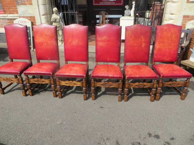 Set of Six Antique Oak / Leather Dining Chairs c.1930
