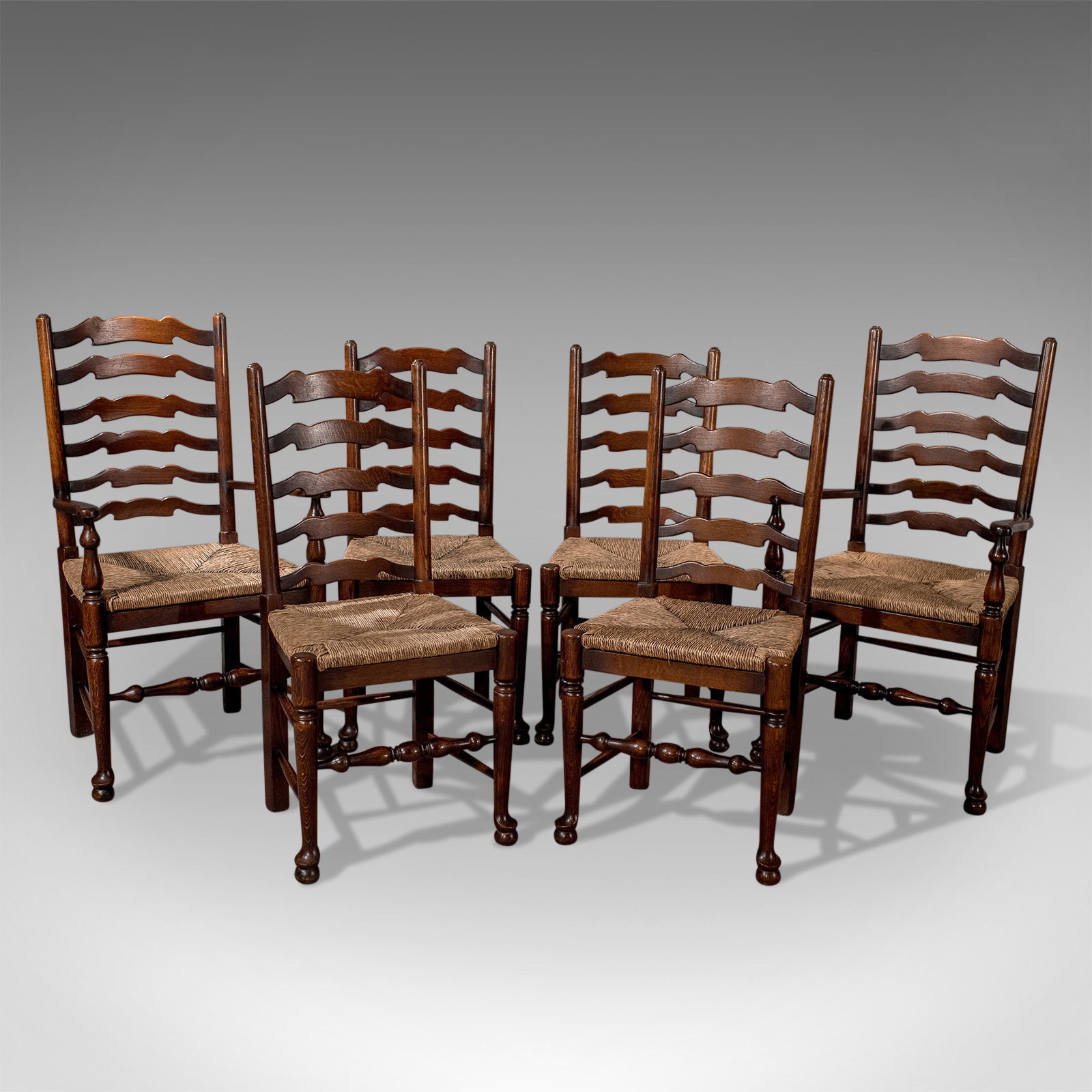 Set of Six Antique Oak Wavy Line Ladderback Dining Chairs, Edwardian c.1910 (1 of 1)