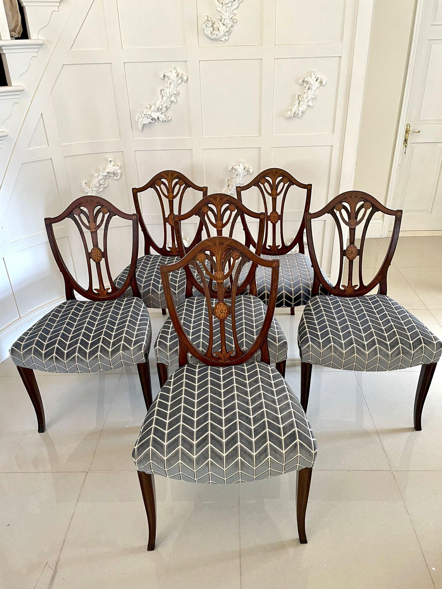 Set of Six Antique Victorian Mahogany Inlaid Dining Chairs