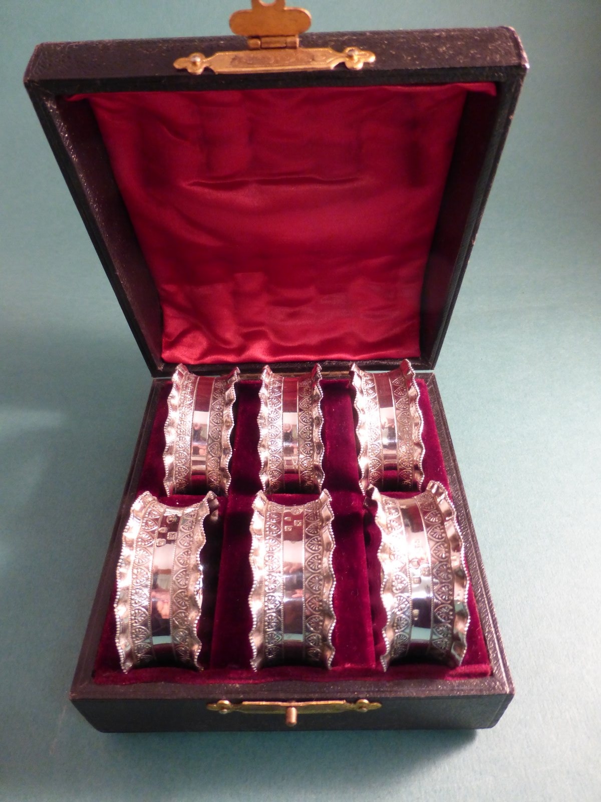 Set of Six Antique Victorian Silver Napkin Rings London 1897