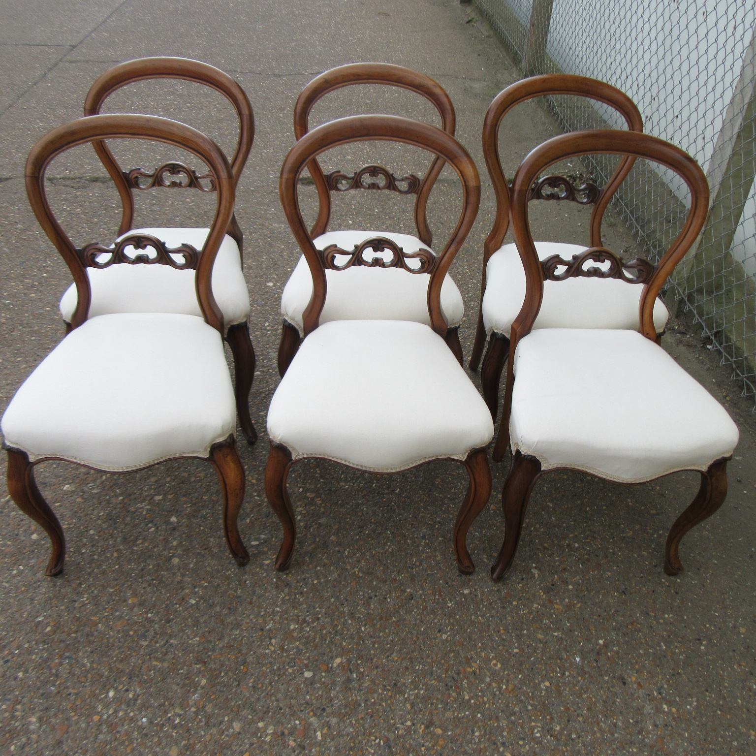 Set of Six Antique Victorian Walnut Balloon Back Dining Chairs c.1840