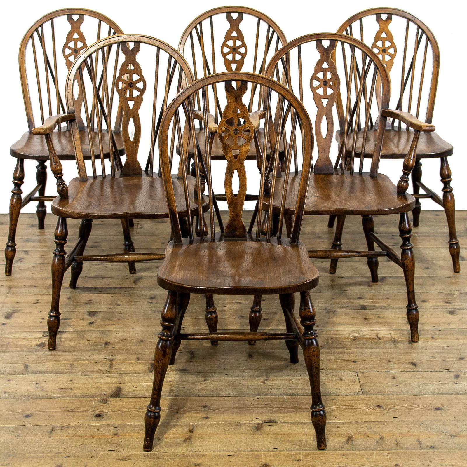 Set of Six Antique Windsor Wheelback Kitchen Chairs (1 of 15)