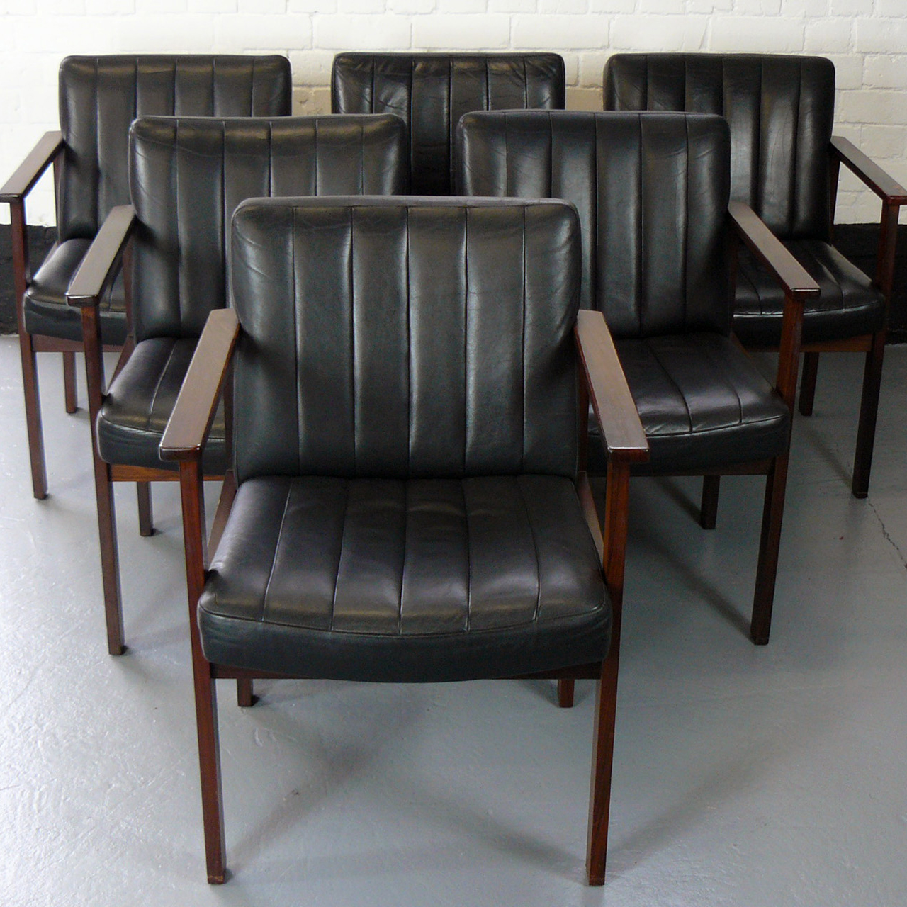 Set of Six Black Leather Chairs by Antocks Lairn Splendid Vintage Condition