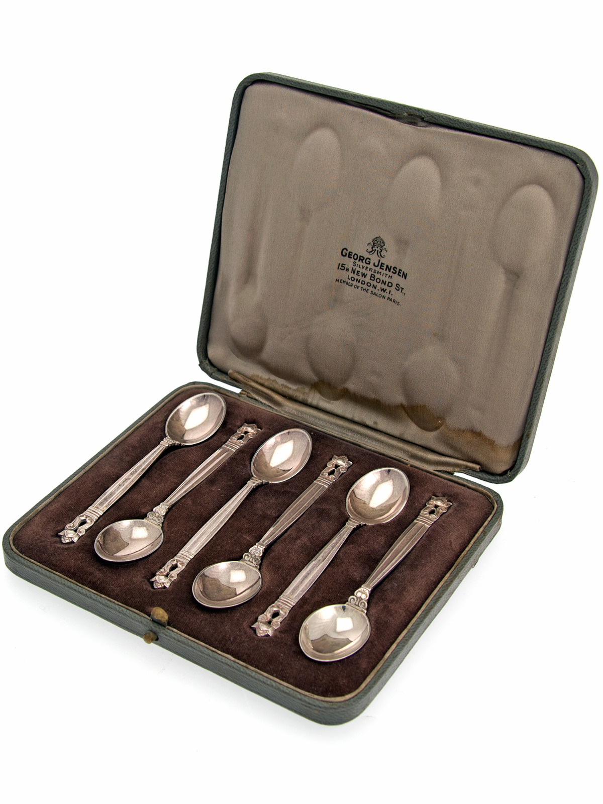 Set of Six Boxed Georg Jensen Silver Tea Spoons (1 of 7)