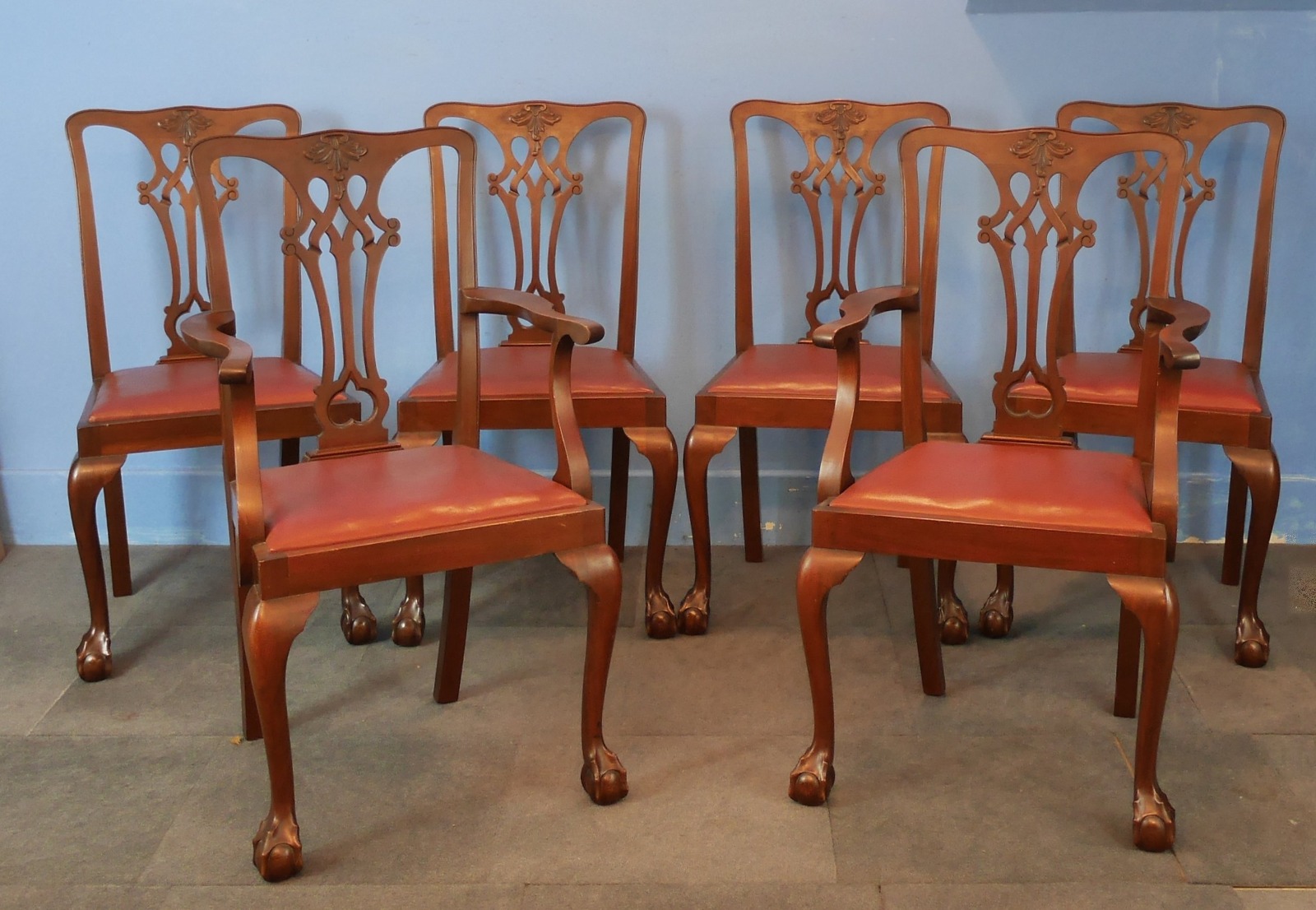 Set of Six Chippendale Style Mahogany Dining Room Chairs