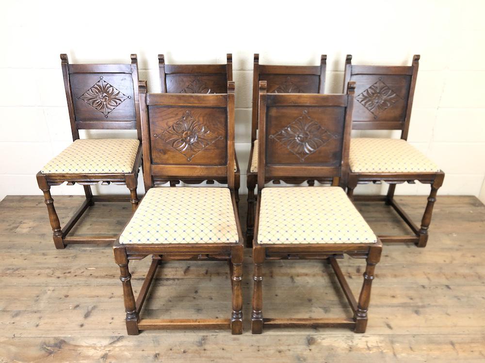 Set of Six Early 20th Century Antique Oak Dining Chairs (1 of 12)