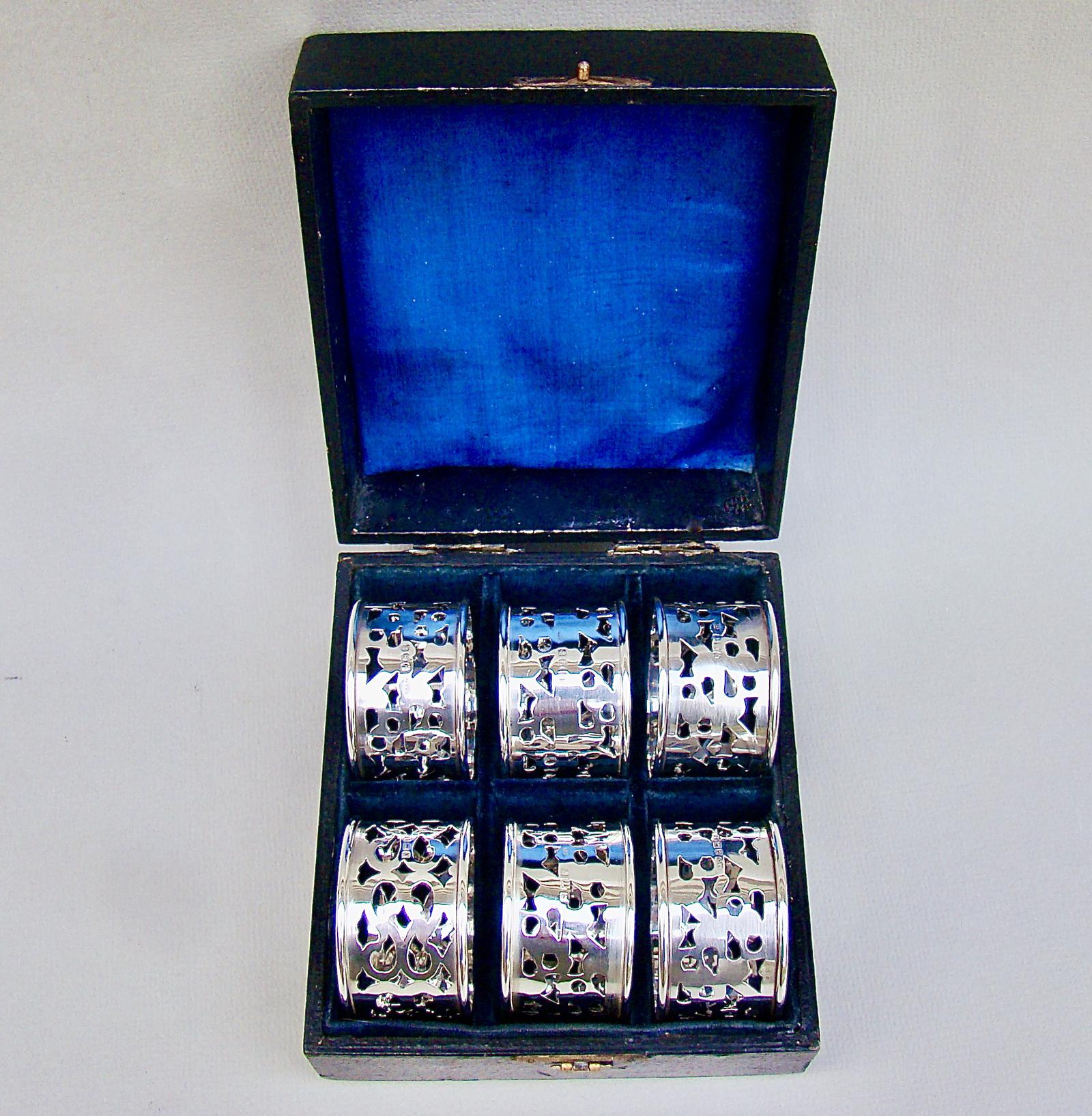 Set of Six Edwardian Solid Silver Napkin Rings by Broadway & Co, Birmingham