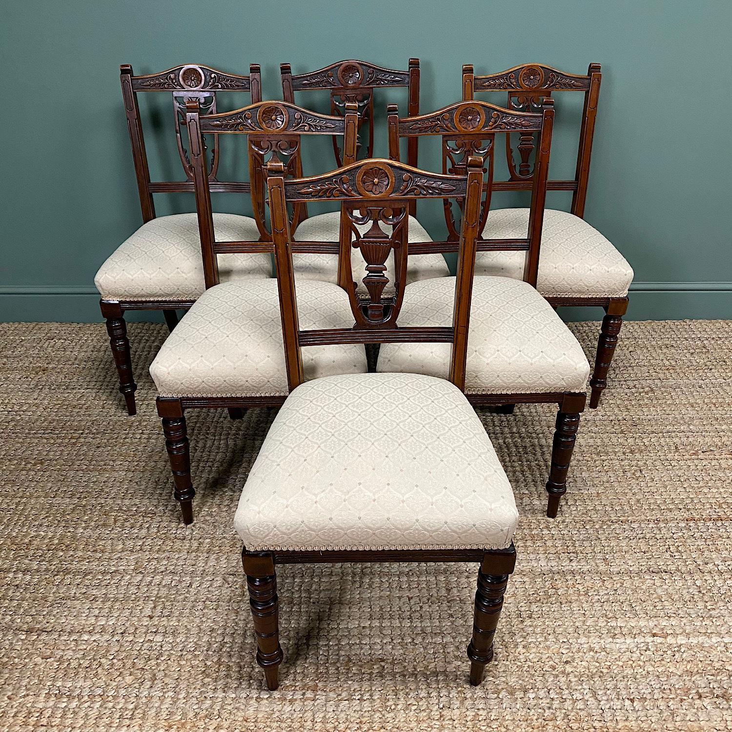 Set of Six Edwardian Walnut Antique Dining Chairs