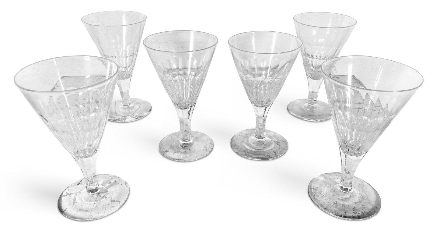 Set of Six Faceted Cut Wine Glasses