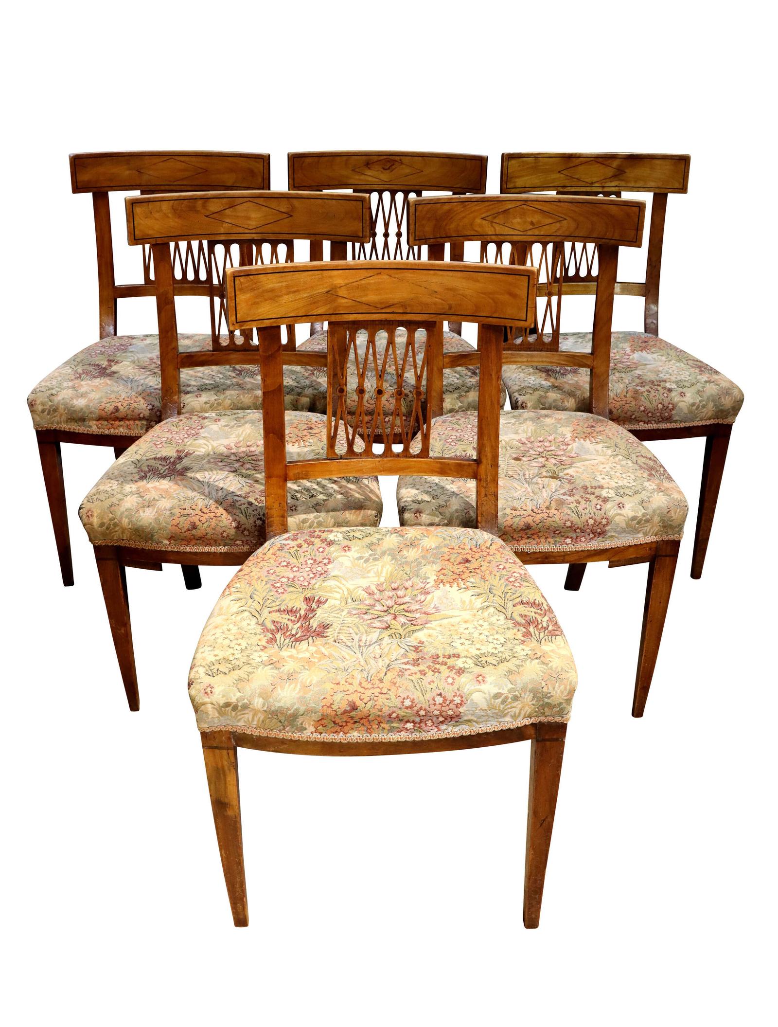 Set of Six French Cherrywood Dining Chairs with Fretted Bar Backs, Circa 1880