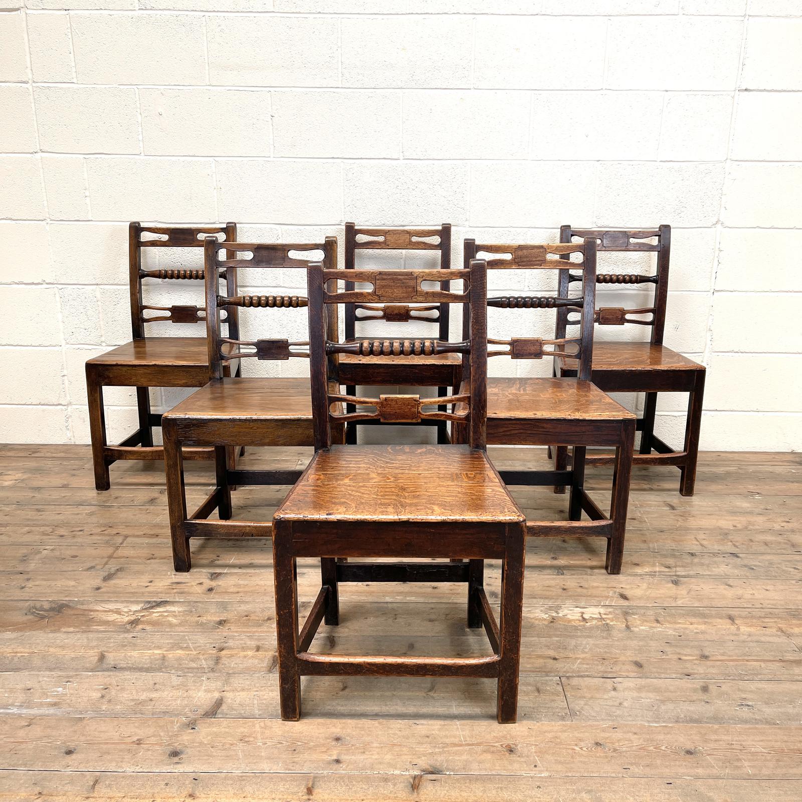 Set of Six Georgian Oak Country Chairs