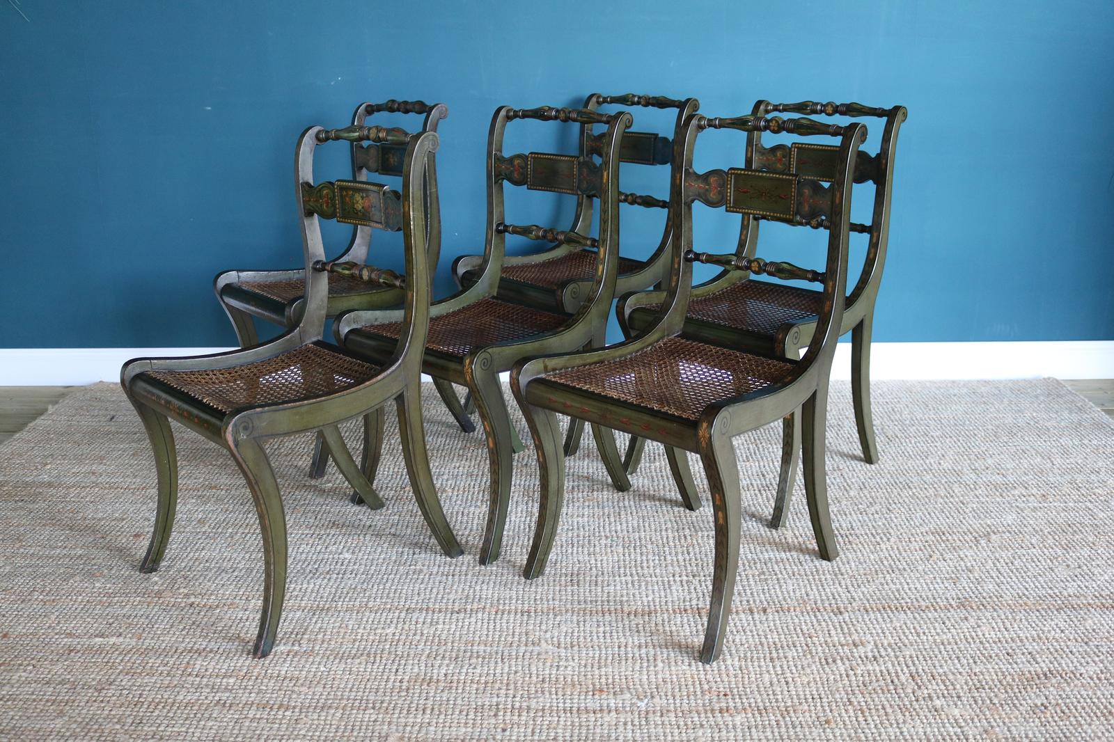 Set of Six Hand-painted Dining Chairs in Regency Taste