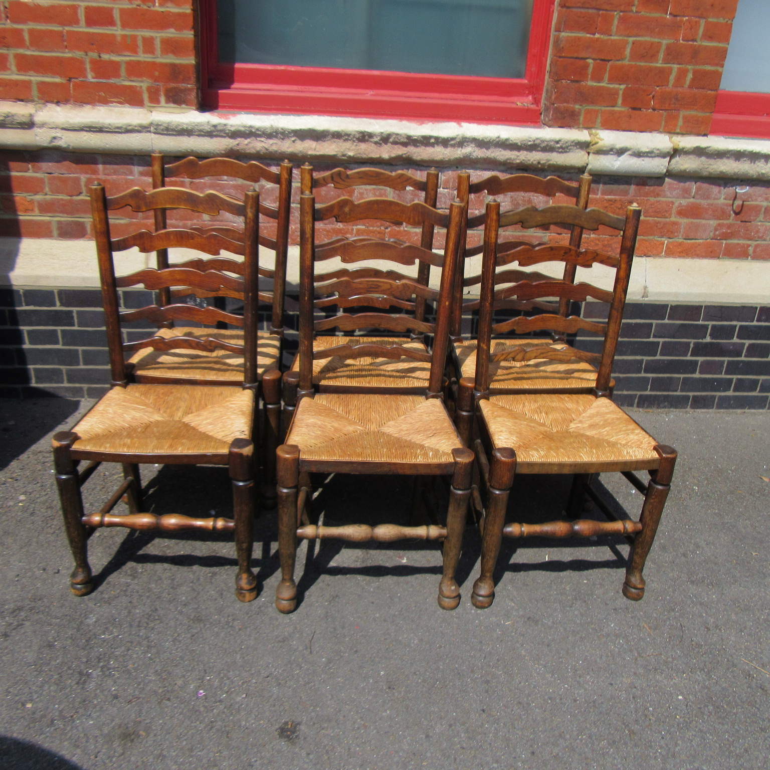 Set of Six Ladder Back Rush Seated Dining Chairs