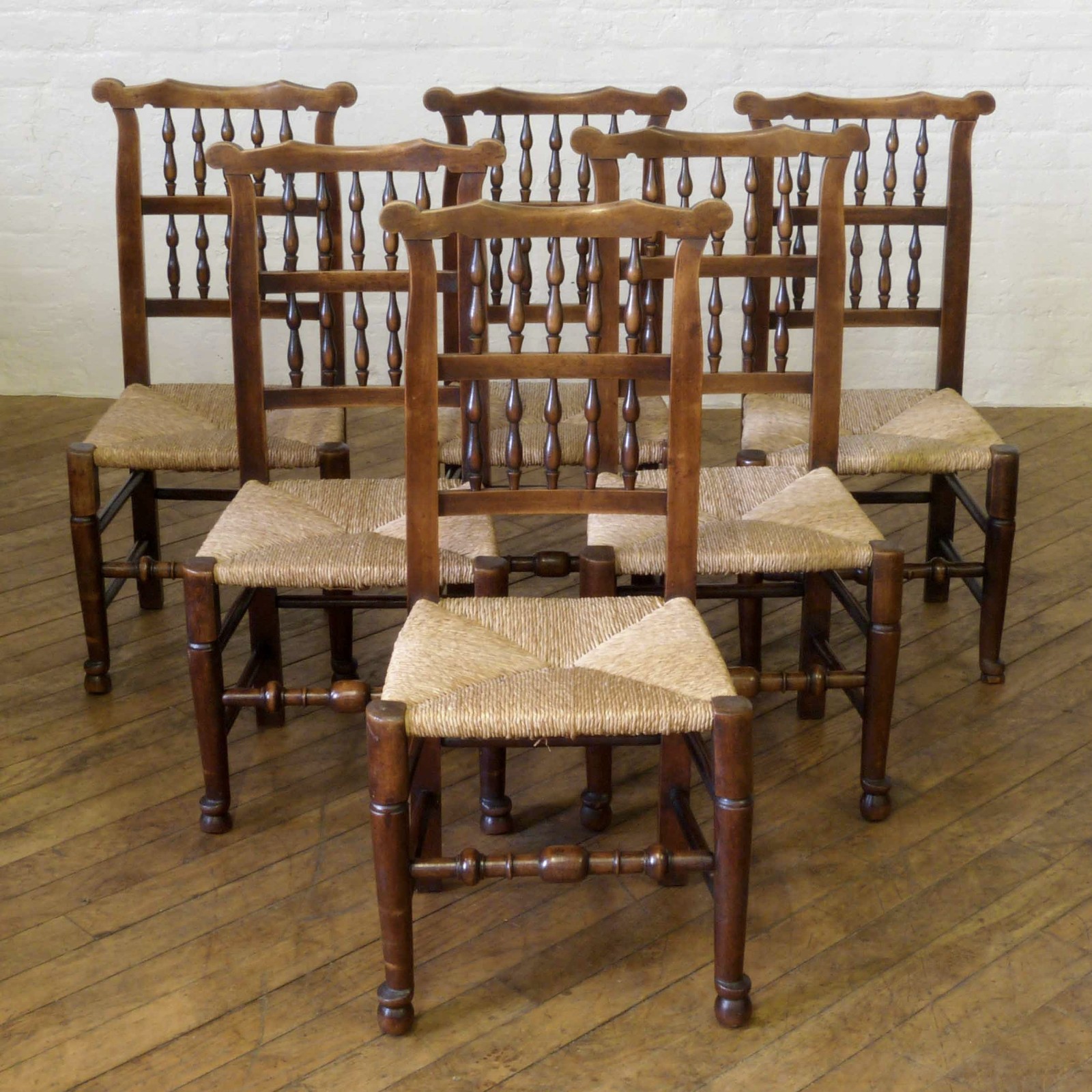 Set of Six Lancashire Spindleback Chairs c.1800