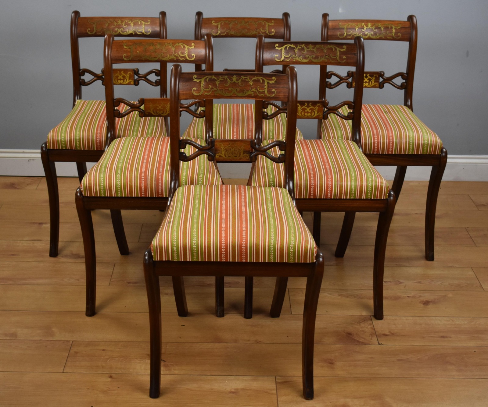 Set of Six Mahogany Brass Inlaid Dining Chairs