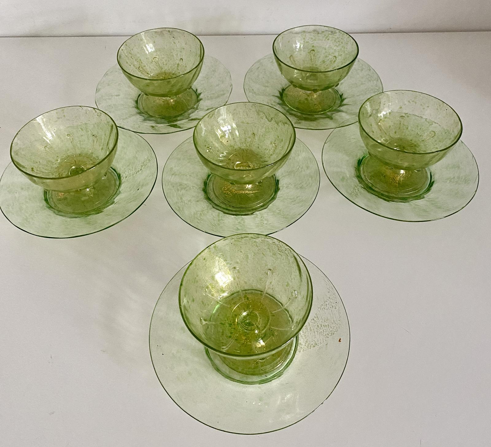 Set of Six Murano Ice Cream Dishes & Plates c.1920