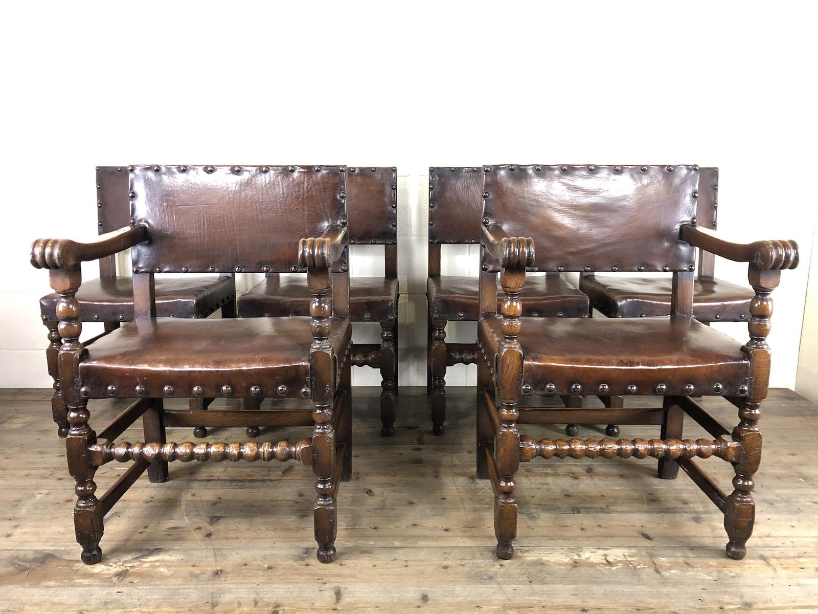 Set of Six Oak and Leather Dining Chairs (1 of 23)