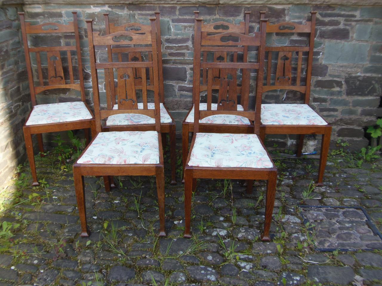 Set of Six Oak Arts & Crafts Dining Chairs (1 of 12)
