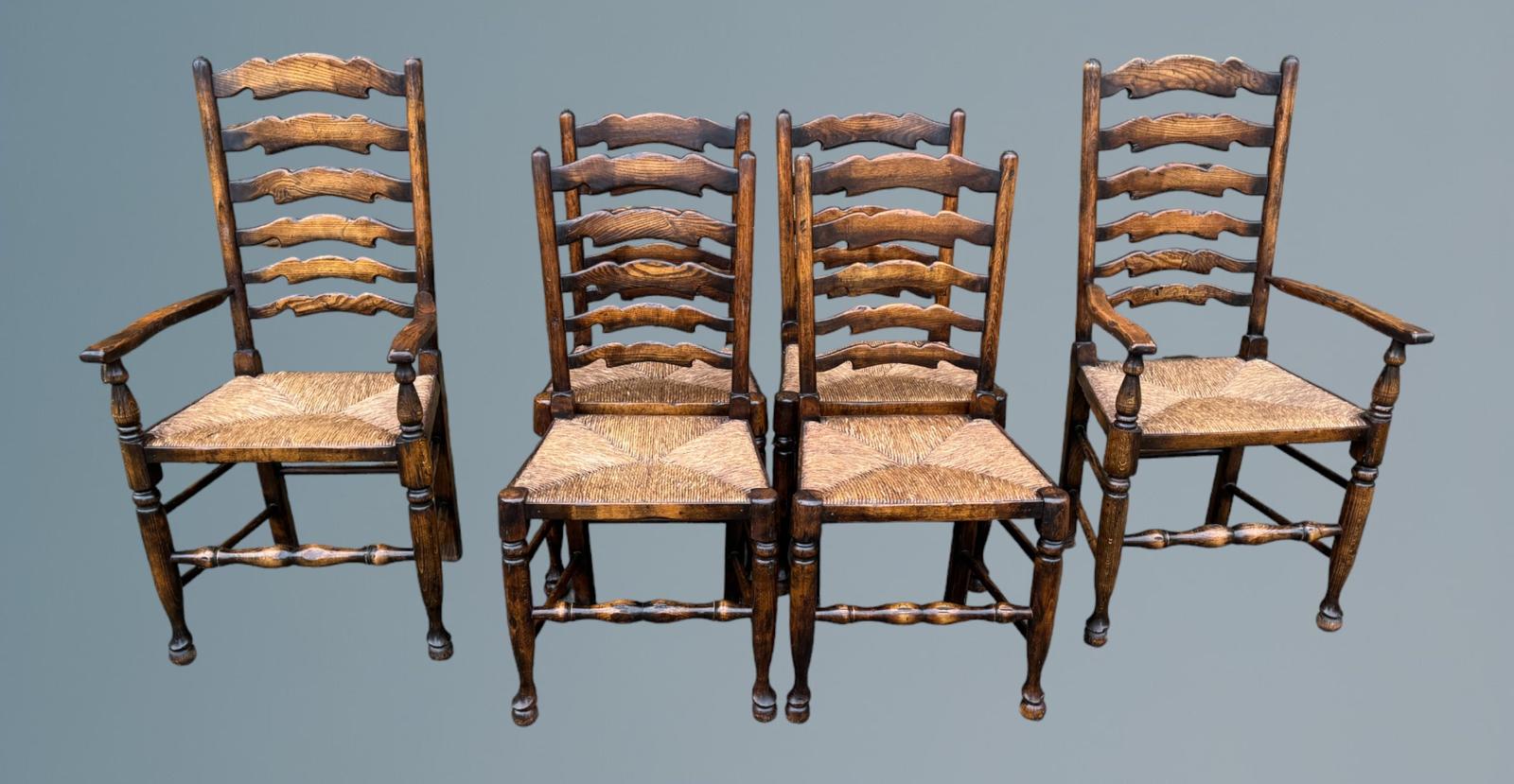 Set of Six Oak Ladder Back Dining Chairs (1 of 10)