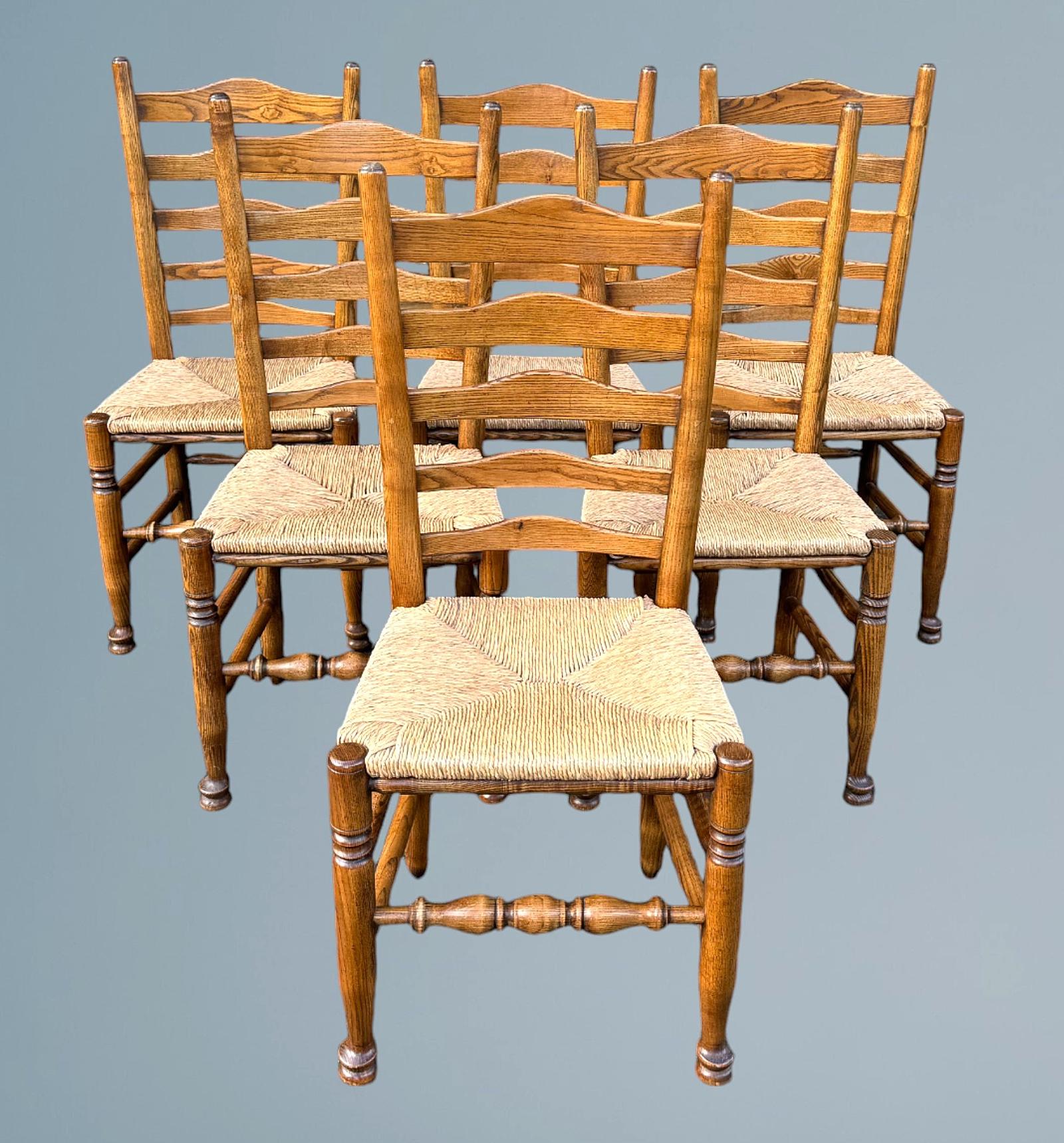 Set of Six Oak Ladder Back Dining Chairs (1 of 20)