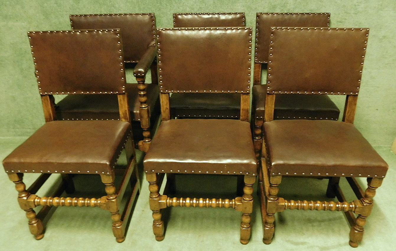 Set of Six Oak & Leather Chairs in the Cromwellian Style C.1920 (1 of 1)
