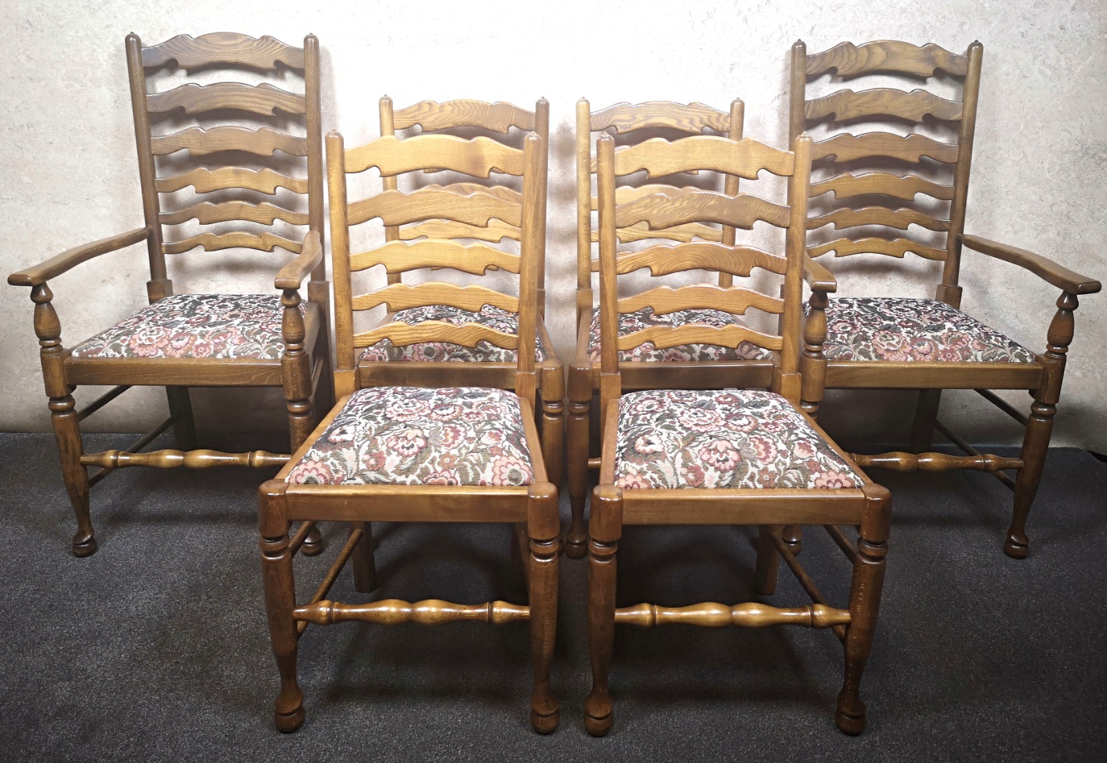 Set of Six Oak Reproduction Ladder Back Chairs (1 of 1)