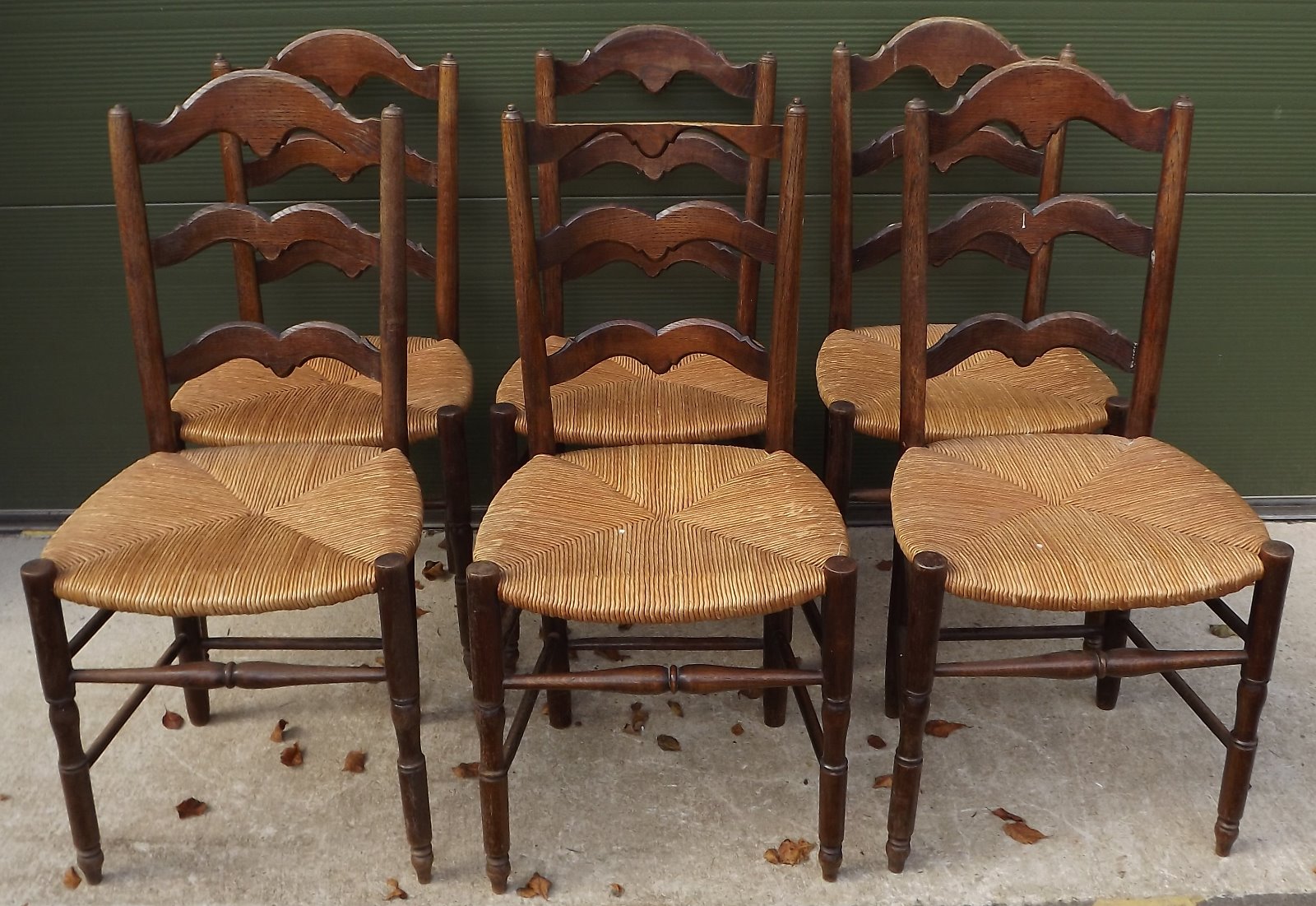 Set of Six Oak Rush-Seated Chairs (Needs Tlc)