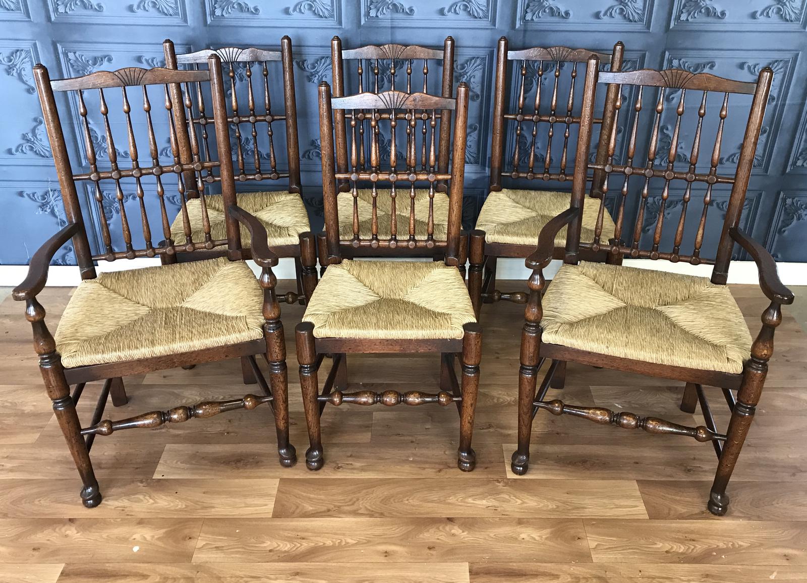 Set of Six Oak Spindle Back Dining Chairs