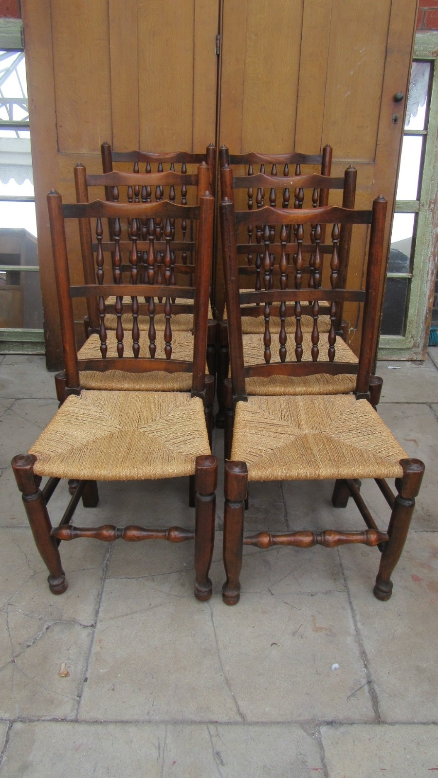 Set of Six Oak Spindle Back Dining Chairs c.1930