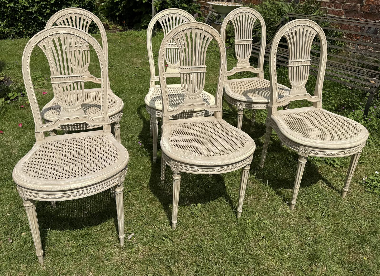 Set of Six Painted and Caned Dining Chairs (1 of 7)