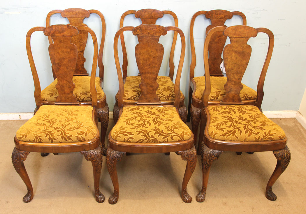 Set of Six Queen Anne Style Walnut Dining Chairs C.1930 (1 of 1)