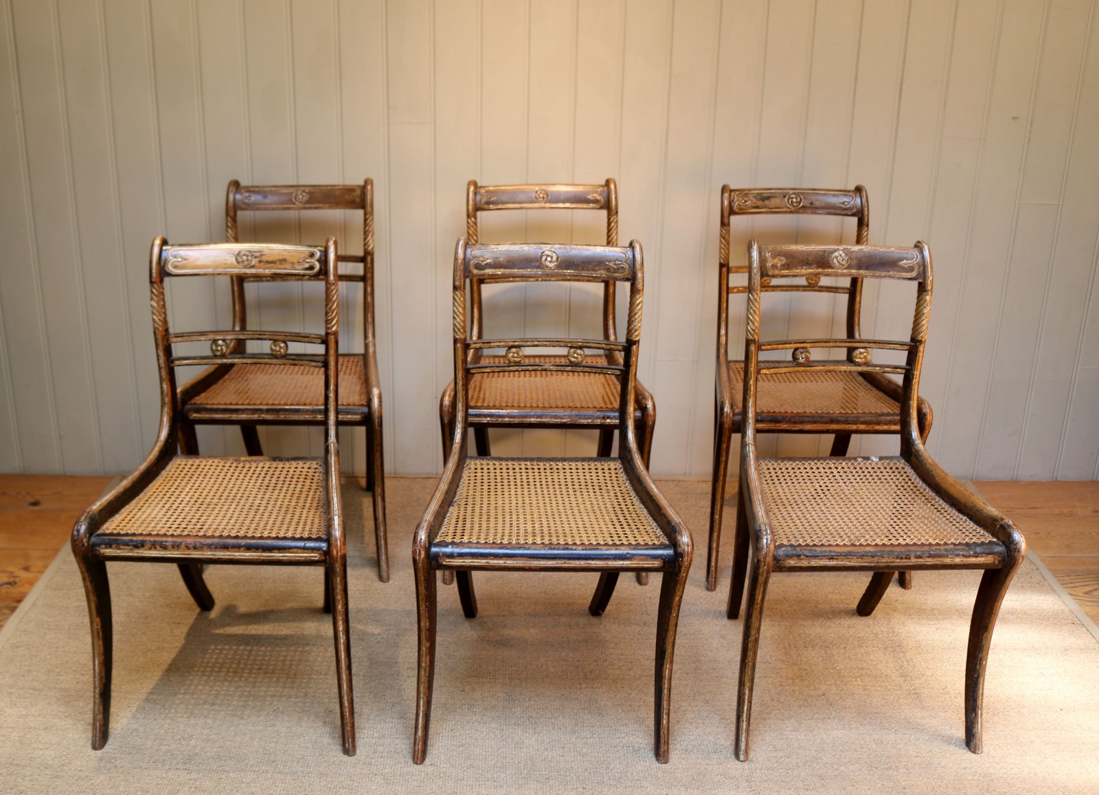 Set of Six Regency Cane Seat Chairs