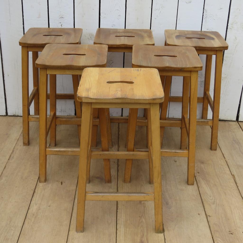 Set of Six School Lab Bar Stools