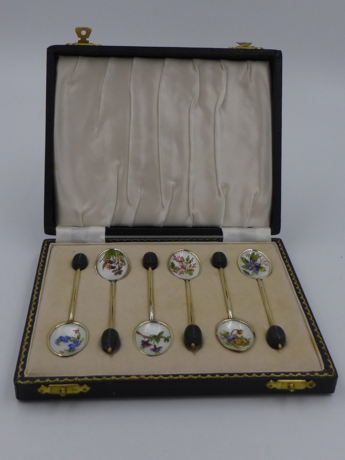 Set of Six Silver & Enamel Coffee Spoons, Birmingham 1952
