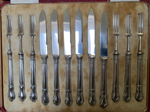 Set of Six Silver Handled Fruit Knives & Forks c.1892