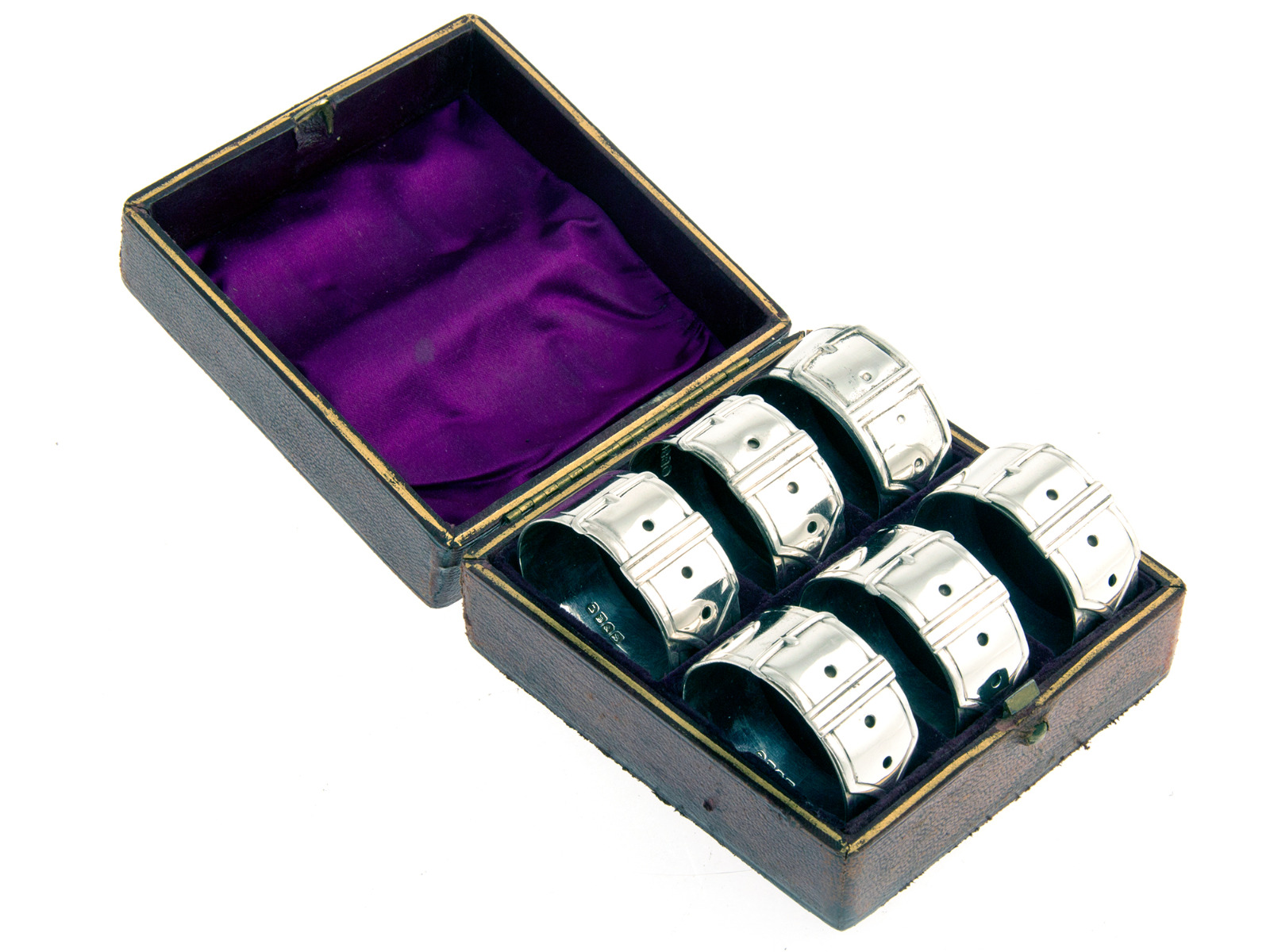 Set of Six Silver Plated Victorian Belt & Buckle Napkin Rings (1 of 1)