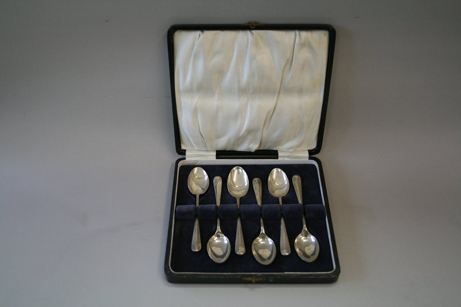 Set of Six Silver Rat-Tailed Tea Spoons in the Original Box (1 of 2)