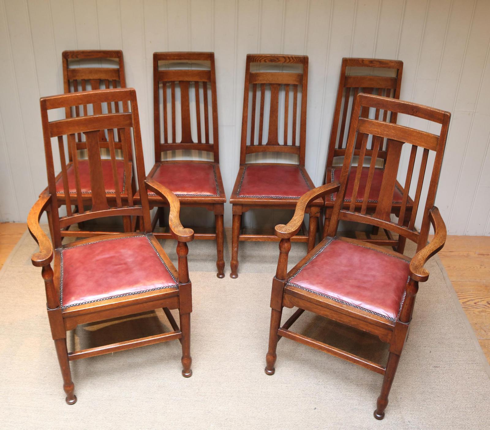 Set of Six Solid Oak Arts & Crafts Dining Chairs (1 of 14)