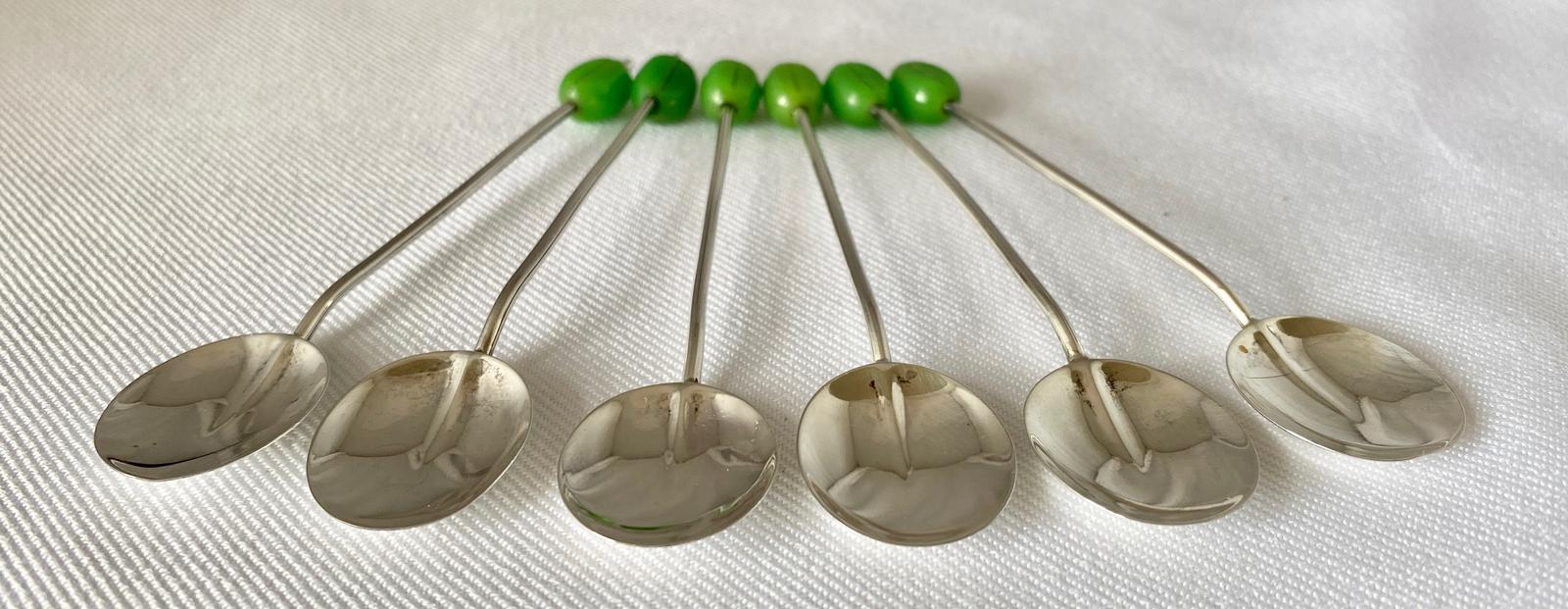 Set of Six Sterling Silver Coffee Bean Spoons