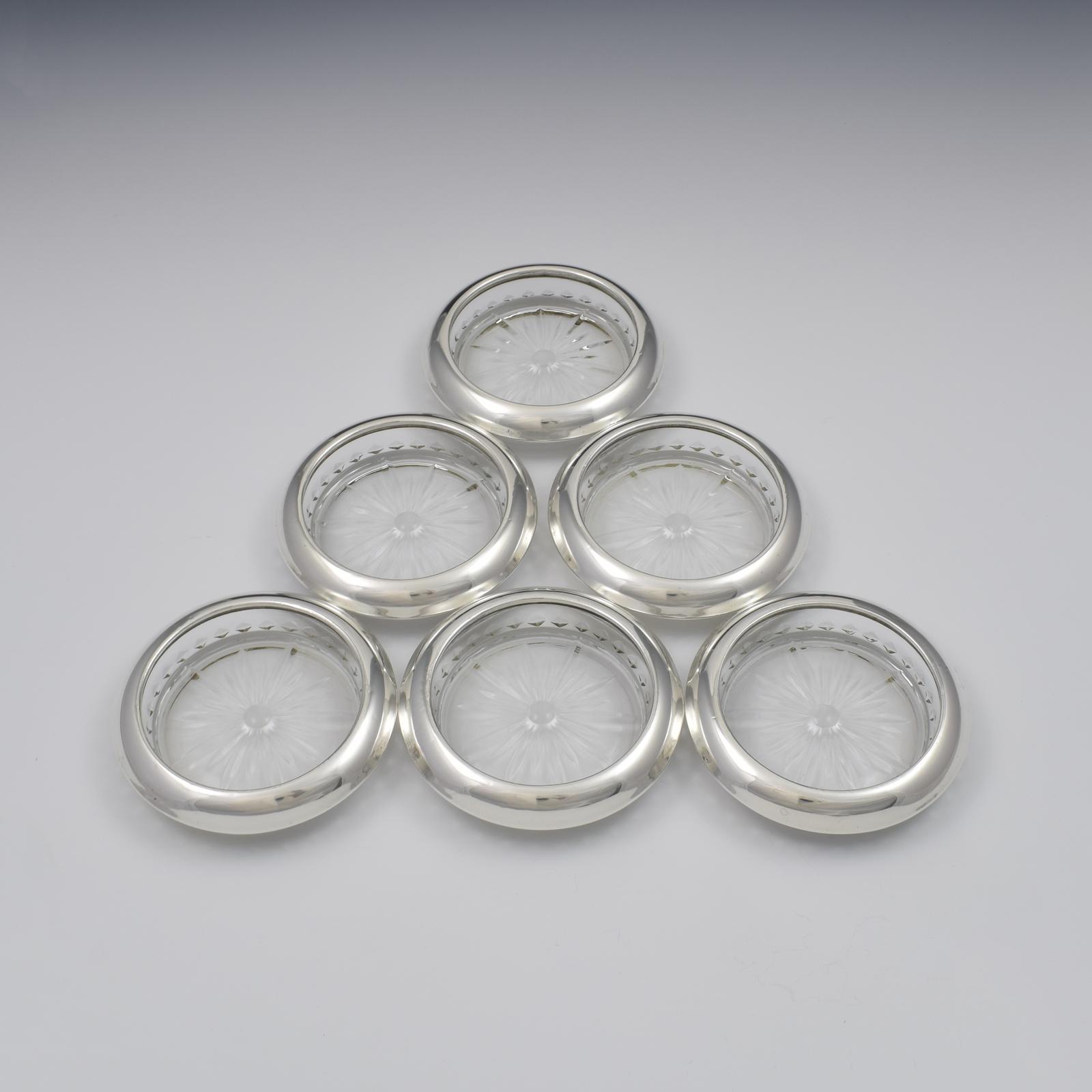 Set of Six Sterling Silver & Glass Wine Glass Coasters (1 of 7)