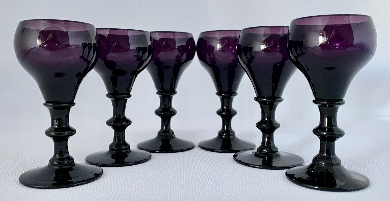 Set of Six Victorian Amethyst Liqueur Sherry Glasses c.1900