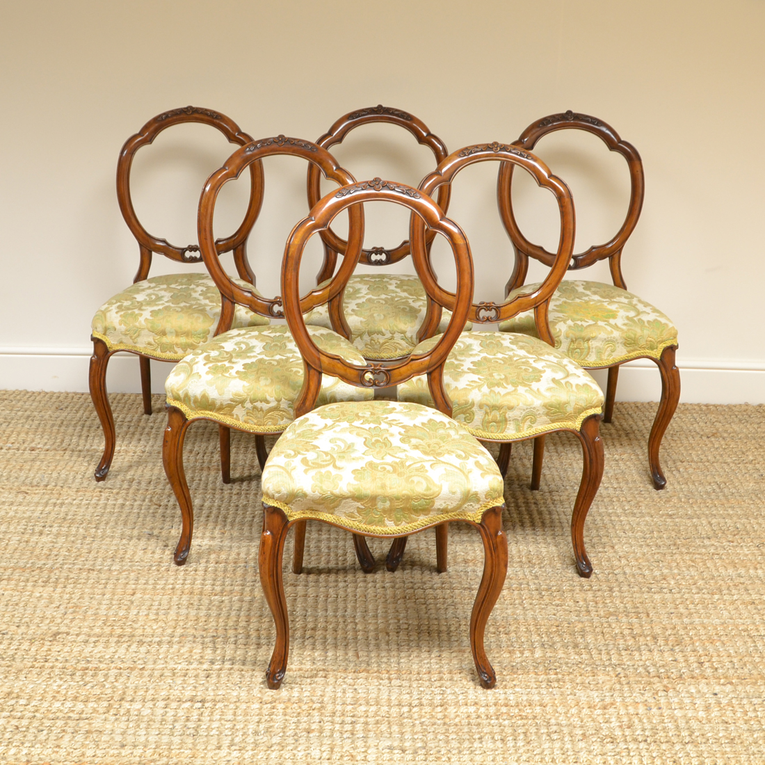 Set of Six Victorian Walnut Antique Balloon Back Chairs